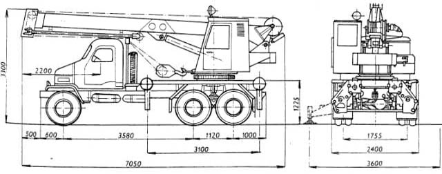 - Rozmery v prepravnej polohe dĺžka: 7 050 mm, výška 3 300 mm, šírka 2 400 mm (s vysunutými podperami 3 600 mm)